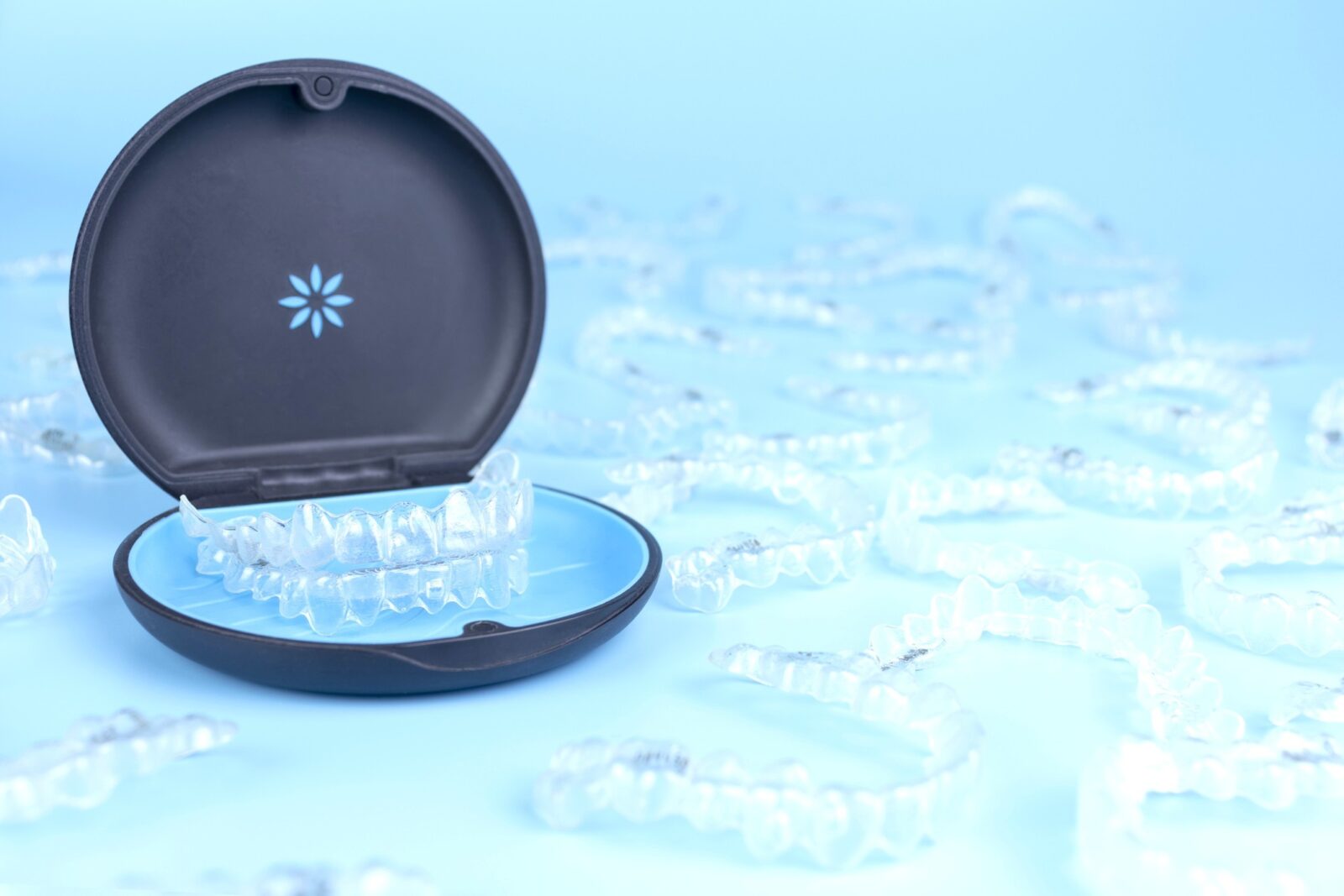 マウスピース矯正では、少しずつ形の違う透明な装置を順番に交換しながら歯を動かします。たとえば30枚、場合によっては100枚近く使うこともあります。