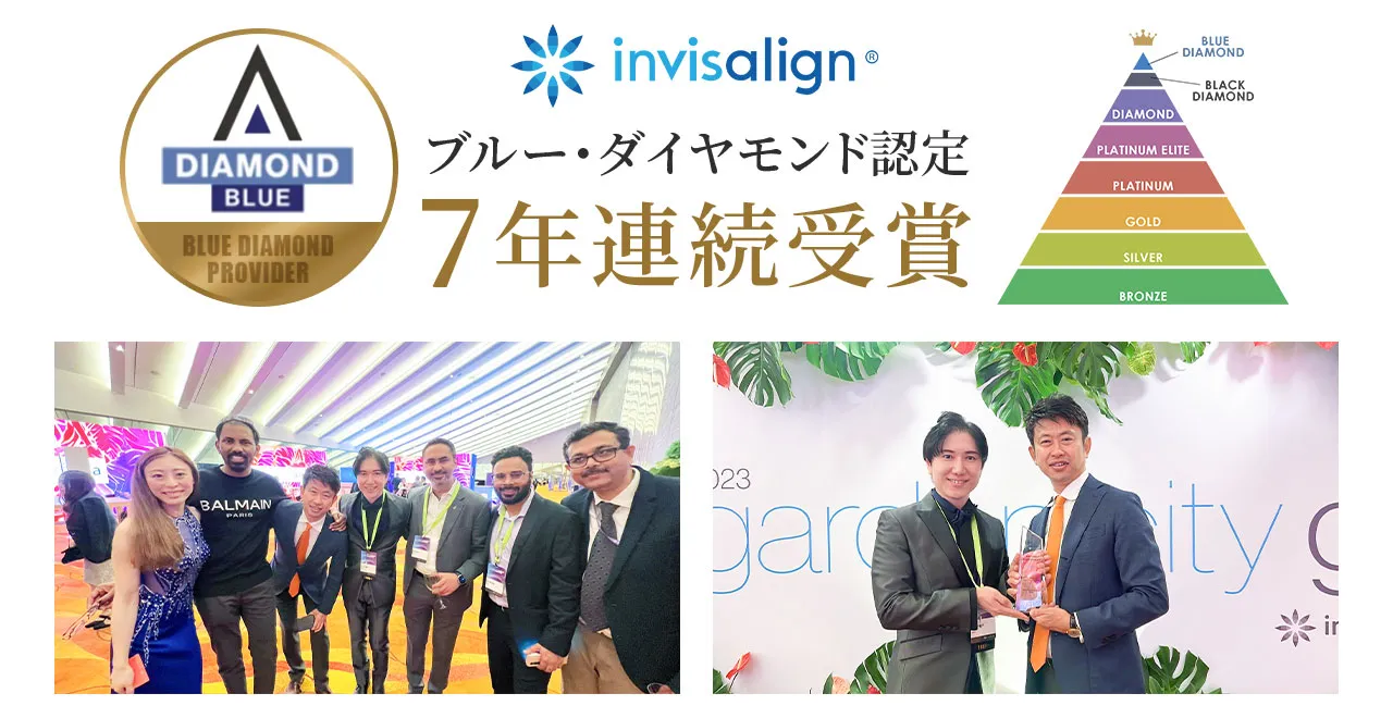 さらに当院は、7年連続でダイヤモンドプロバイダーを取得し、現在は「ブルー・ダイヤモンドプロバイダー」に認定。これは年間751症例以上を手がける医院にのみ与えられる称号です。これだけ多くの症例が集まるのは、患者さまからの信頼の証であり、同時に、さまざまなケースに対応できる経験と技術があるからです。世界水準の矯正技術による治療を、ぜひ当院でご体感ください。